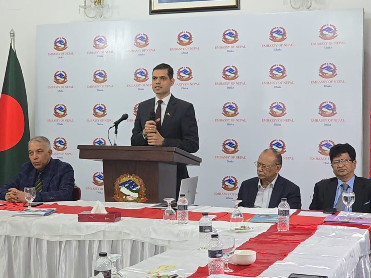 त्यस अवसरमा राजदूत घनश्याम भण्डारीले नेपाल र बङ्गलादेश बीचको बढ्दो आर्थिक संलग्नताबारे चर्चा गर्दै व्यापार, ‘कनेक्टिभिटी’, ऊर्जा र पर्यटनलगायत क्षेत्रमा हासिल भएको प्रगति, नेपालबाट पहिलोपटक ४० मेगावाट जलविद्युत् बङ्गलादेश आयात, ऊर्जा सहयोगले दुई देशलाई मात्र नभई सम्पूर्ण दक्षिण एसिया क्षेत्रलाई त्यसबाट लाभ हुने बताउनुभयो ।